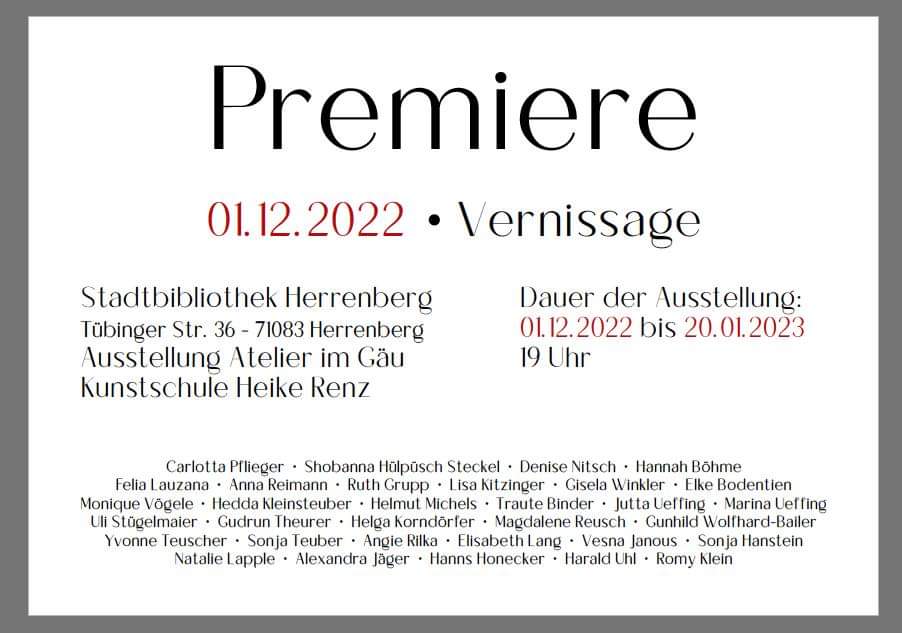 Kategorien Aktuelles Vernissage Herrenberg Post author Von lapplen Post date 7. Dezember 2022 Keine Kommentare zu Vernissage Herrenberg Teilen mit: Auf X teilen (Wird in neuem Fenster geöffnet) X Auf Facebook teilen (Wird in neuem Fenster geöffnet) Facebook Auf Telegram teilen (Wird in neuem Fenster geöffnet) Telegram Email a link to a friend (Wird in neuem Fenster geöffnet) E-Mail Auf WhatsApp teilen (Wird in neuem Fenster geöffnet) WhatsApp Share on LinkedIn (Wird in neuem Fenster geöffnet) LinkedIn Share on Pinterest (Wird in neuem Fenster geöffnet) Pinterest Gefällt mir Wird geladen …